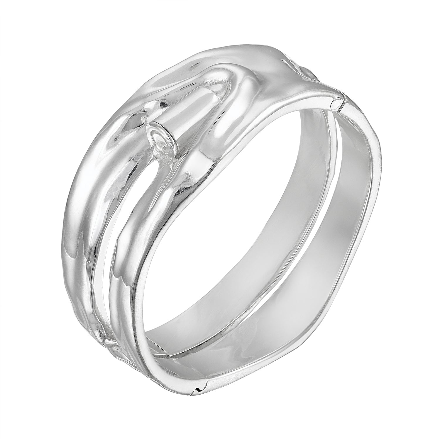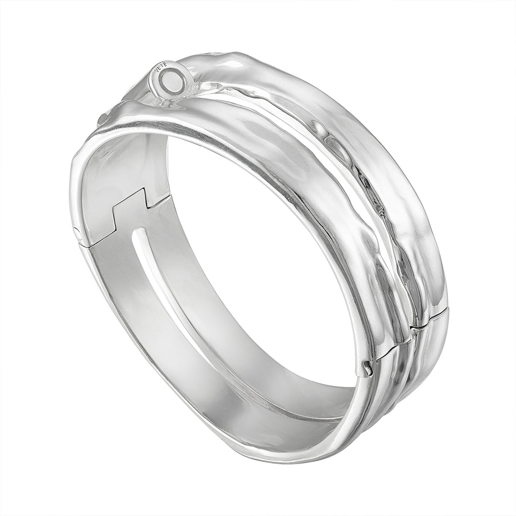 THE BULLET CUFF IS COMPRISED OF 925 STERLING SILVER FEATURING A HEAVYWEIGHT HINGED CUFF WITH CLIP CLOSURE PIERCED WITH A 9mm BULLET.