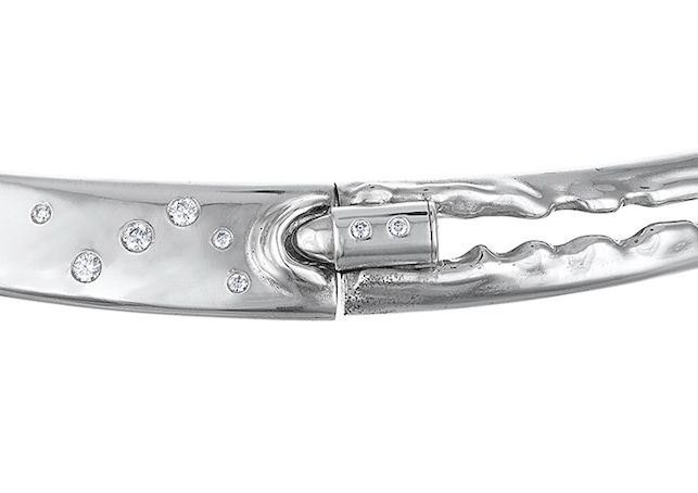 THE BULLET DIAMOND CHOKER IS 925 SILVER TORQUE NECKLACE PIERCED WITH A 9mm BULLET SET WITH 13 BRILLIANT-CUT DIAMONDS TOTALLING 0.36 carats. MADE IN ITALY.